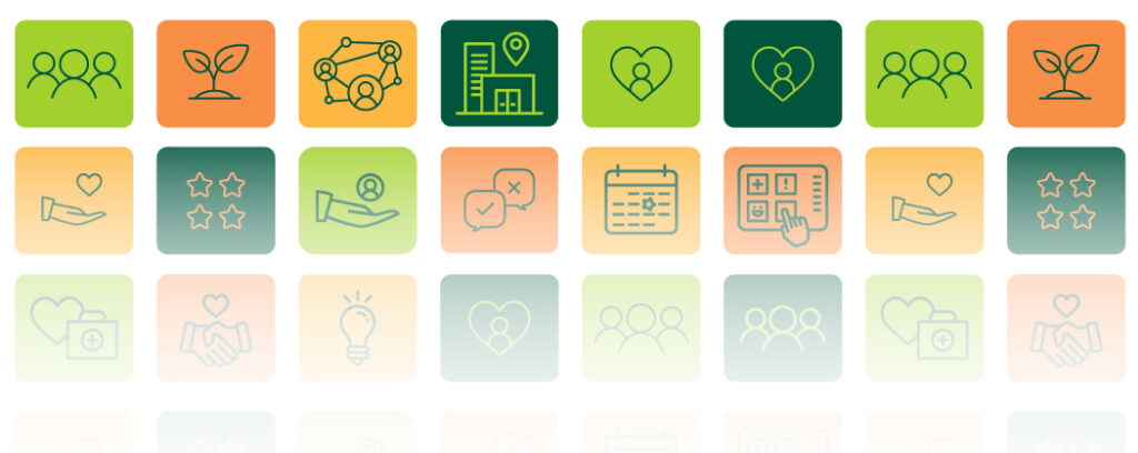 Using the brand’s new palette, we developed angular graphics relating back to their logo. We also developed fun icons in vibrant colors to accompany headings on all of the service pages.
